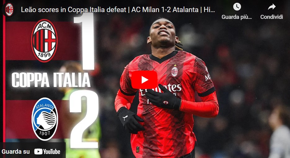 Coppa Italia: gli highlights di Milan-Atalanta 1-2 (VIDEO) Scritto il 11 Gennaio 202411 Gennaio 2024 Pubblicato inNOTIZIE MILAN , VIDEO Le azioni salienti del match di ieri sera